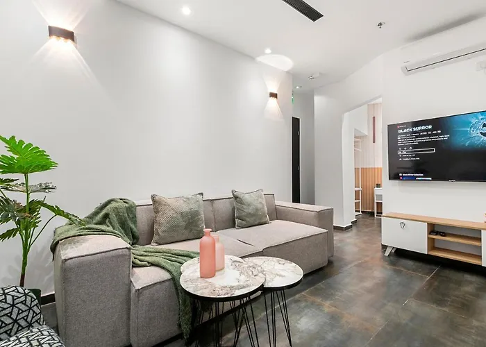 Along with a TV, Brand New Apartment W Bomb Shelter Next To The Beach M4 features comforts such as an air conditioner for guests' maximum comfort. The apartment is also furnished with a sofa set and a work desk. Bathrooms have a walk-in shower and a separate toilet. Furthermore, bath sheets is available.